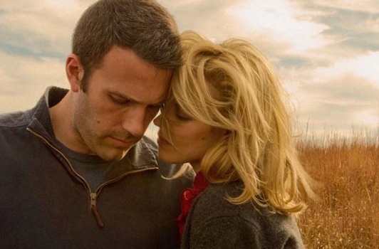 Un homme, Ben Affleck (qui quitte son meilleur rôle, celui de réalisateur, pour retrouver celui d’acteur au charisme d’huitre) qui rencontre une femme (Olga Kurylenko, fragile et touchante) et qui va l’entrainer dans l’ennui de son quotidien. Très vite elle s’ennuie, donc, et le quitte. Il va finir par la reprendre, parce qu’il pense que c’est son devoir, quitte à abandonner une autre femme (Rachel McAdams, dont on se demande si elle n’a pas été sacrifiée au montage comme Sean Penn dans The tree of life), qui, elle, le rendait heureux…